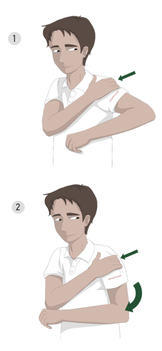 - Piega il braccio sinistro a circa 90 gradi e appoggia la mano destra sul punto più esterno del braccio (vedi immagine 1)