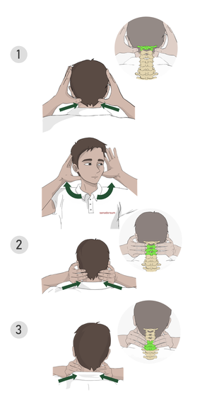 - Appoggia indice, medio e anulare sulle vertebre cervicali 2, 3 e 4 ed esercita una pressione uniforme