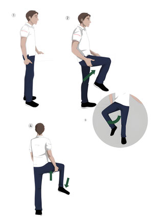 - Con la mano destra afferra la coscia appena sotto il gluteo e piega la gamba verso l’alto (vedi immagine 2)