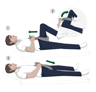 - Mantieni l’asciugamano in tensione e stendi lentamente la gamba (vedi immagine 3)